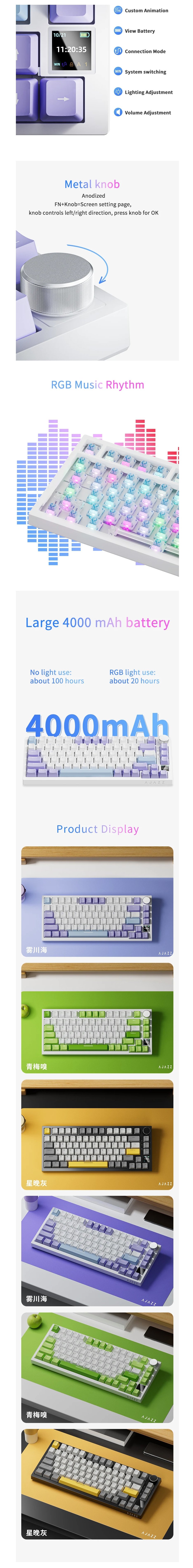 Ajazz AK820/AK820Pro 게임용 기계식 키보드 Bluetooth 5.1/무선/C 유선 맞춤형 키보드(노브 핫 스와핑 가스